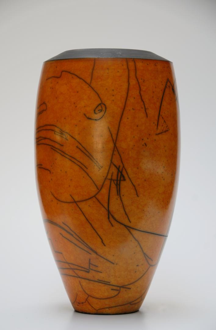 Terre sigillée et cuisson dans un four raku, enfumage sciure et papier
